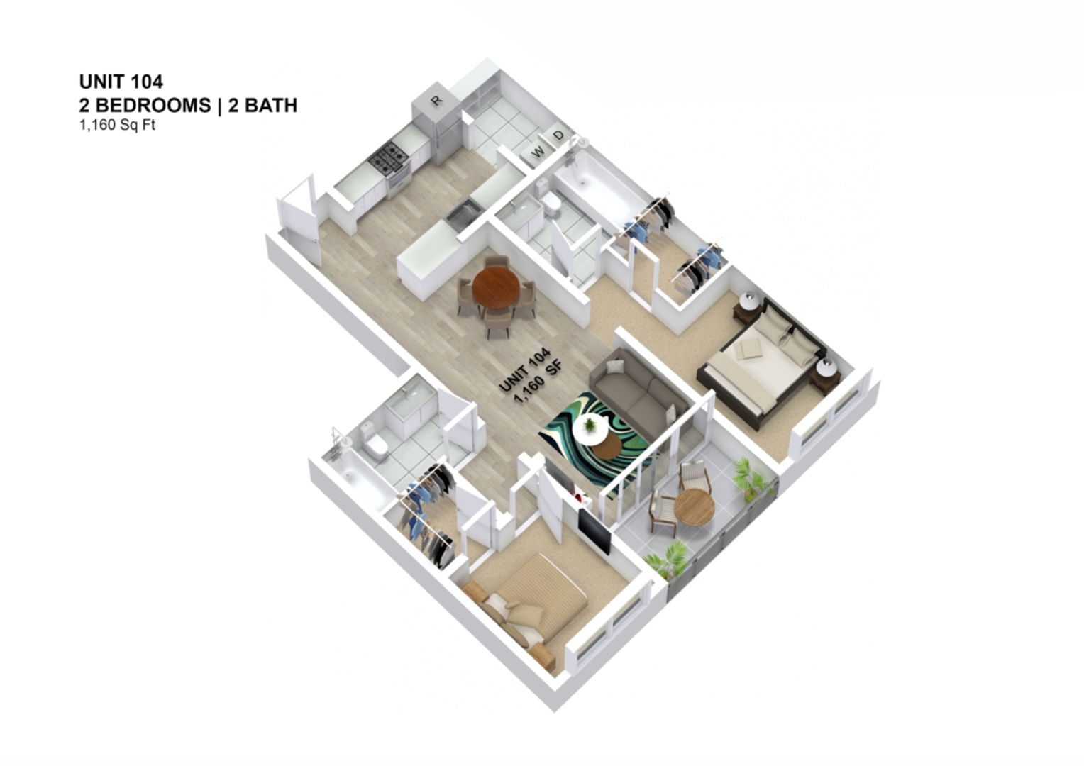 2 Bedroom 2 Bath Apartment