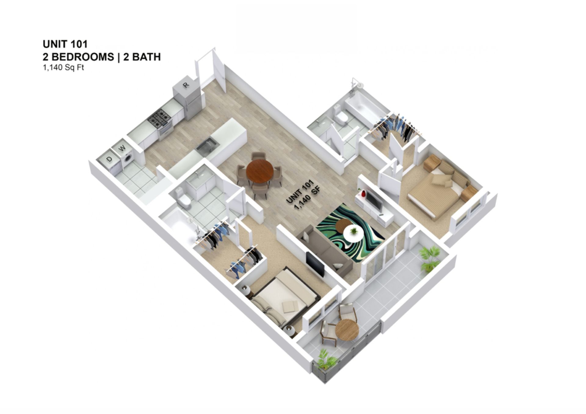 2 Bedroom 2 Bath Apartment on the Top Floor