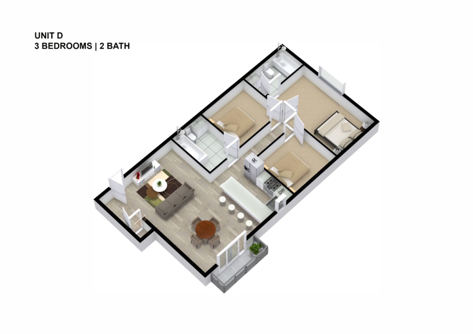 3 Bed 2 Bath Apartment