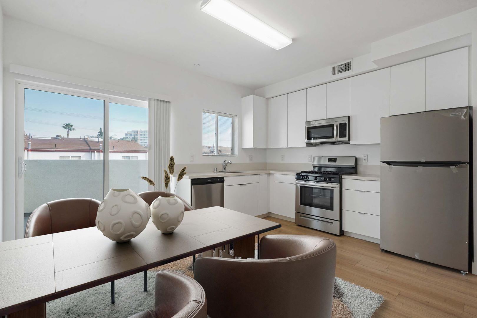 Welcome to 14912 Wyandotte St Apartments, a stunning townhouse located in the heart of Van Nuys, CA. This end unit boasts 3 spacious bedrooms and 2.5 well-appointed bathrooms, offering ample space for comfortable living. The modern kitchen is equipped with top-of-the-line stainless steel appliances, perfect for those who love to cook. The convenience of an in-unit washer and dryer eliminates the hassle of laundromat trips. The private garage provides secure parking and additional storage space. Enjoy the California sun from the large balcony, a perfect spot for morning coffee or evening relaxation. Experience the perfect blend of comfort, convenience, and style at 14912 Wyandotte St Apartments.